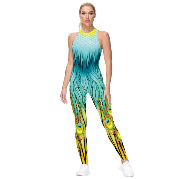 Halloween Carnival Cosplay Costumes Mecha Armor Anime Printed Sexy Sleeveless Women Jumpsuit Outfits