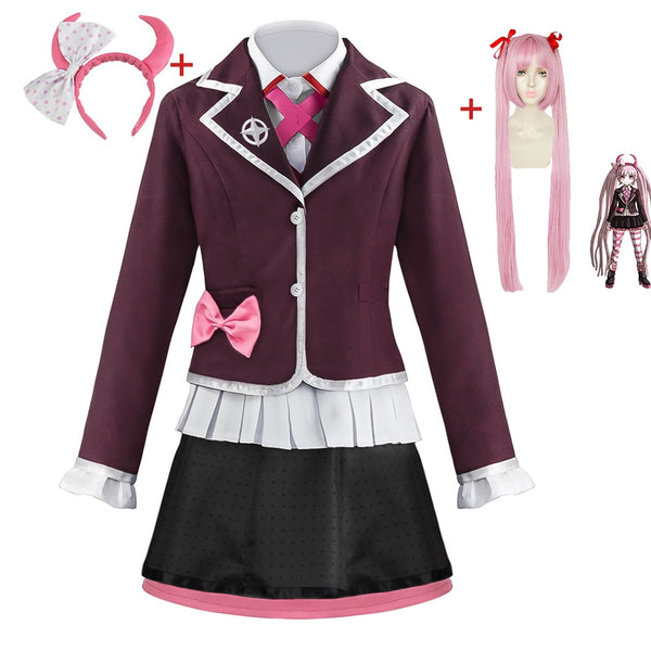 Anime Dangans and ronpas Another Episodede Utsugigi Kotokoko Cosplay Wig and JK Uniform Pink Long Hair Halloween Woman Party Clothes FullSet Cosplay Costume