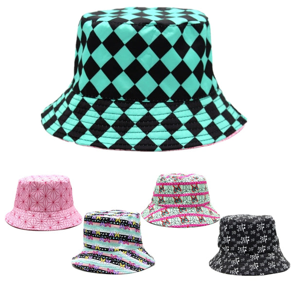 Anime Demons cos Slayerer Cap Cosplay Props Kamadodo Tanjirouou Nezukoko Printing Bucket Hat Women Fisherman Hats Sunhat Costume Accessories
