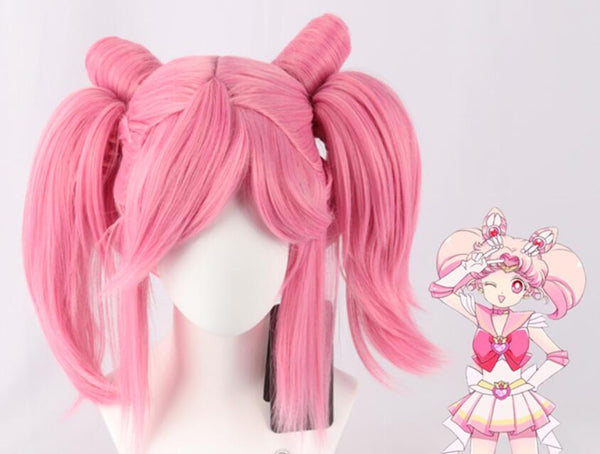 Sailors Chibibi Usa Chibiusasa Short Pink Heat Resistant Synthetic Hair with Clip Ponytail Cosplay Costume Wig