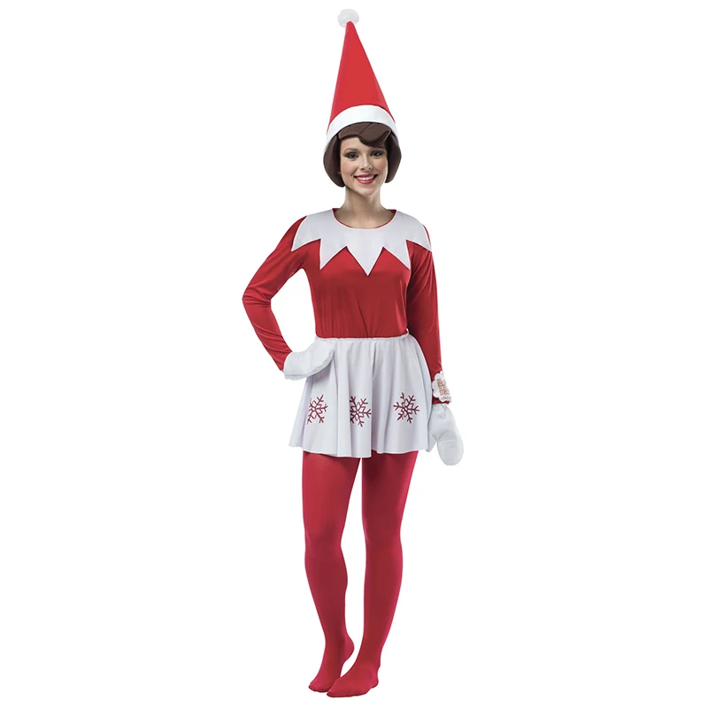 Weihnachtskostüm für Erwachsene und Kinder, Roter Elfen-Cosplay-Anzug, Eltern-Kind, schöne Neujahrsparty, Cosplay-Outfits