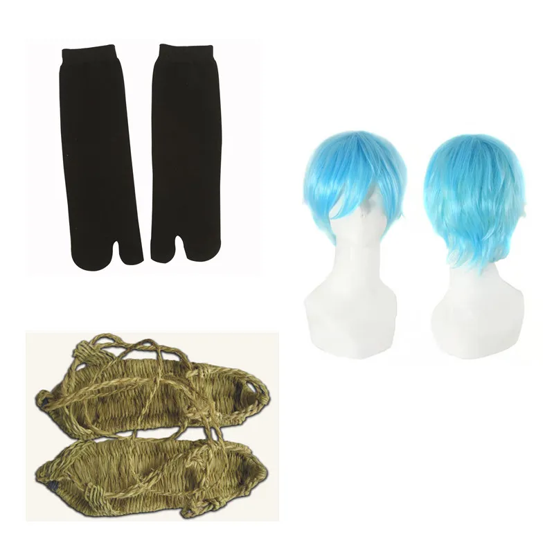 【Paketliste】 6-teiliger Herrenanzug: Mantel, Kendo-Hose, schwarzer Gürtel, Perücke, Strohsandalen, Socken