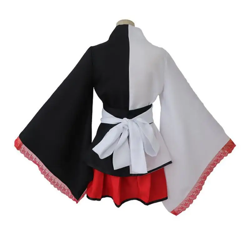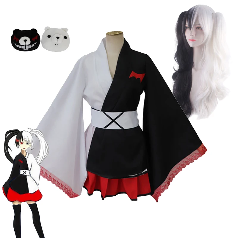 Anime Danganronpa Cosplay Kostüme Monokuma Kimono Komplettset Japanisches Kleid Perücke Frauen Abschlussball Party Schwarz-Weiß-Bär Zubehör