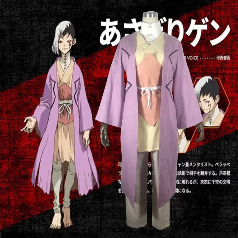 Anime Dr. S. Stone Asagiri Gen Cosplay Kostüm Ishigami Senku Kostüme Uniformen Gürtelhose Outfit Kostüm Halloween Kostüme Perücke