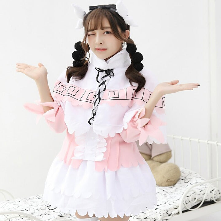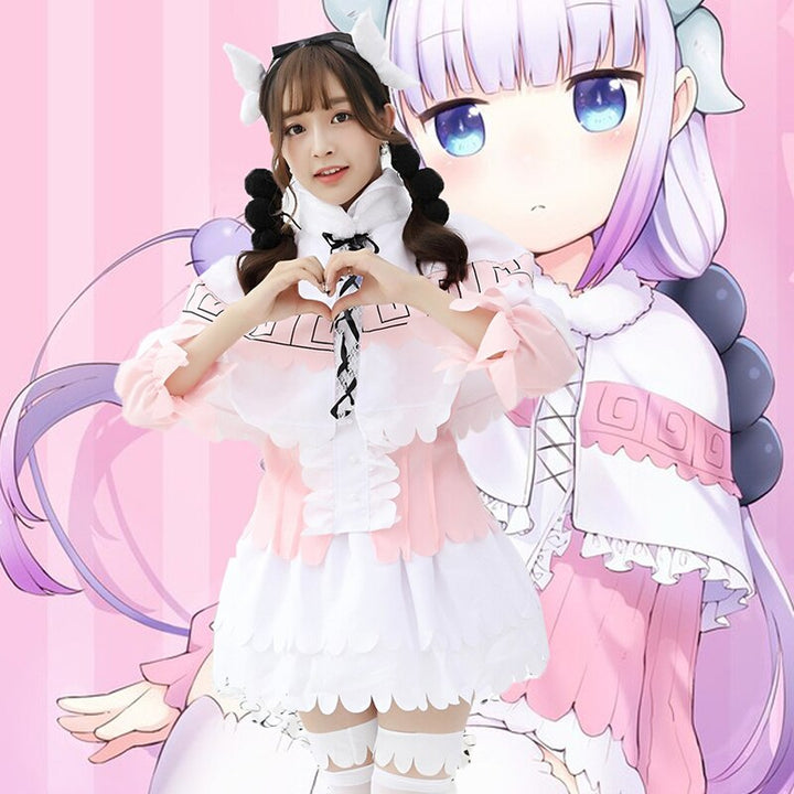 Cosplay Japanische Anime Miss Dragon Maid Cosplay Kostüme Set Halloween Karneval Uniformen Weihnachtskleider Rosa Lolita Kleider