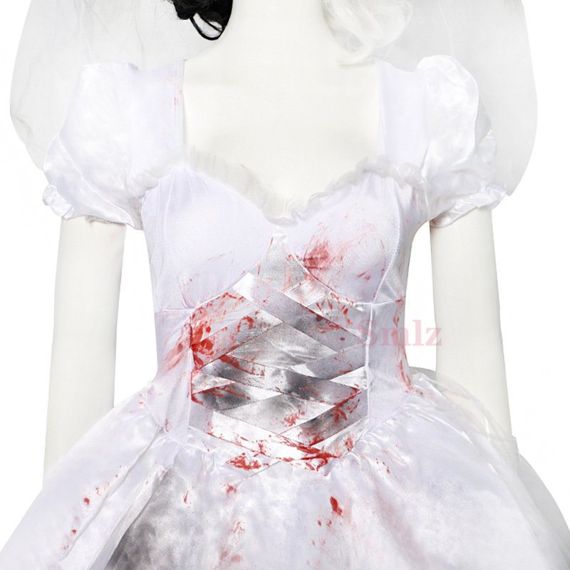 Halloween Party Cosplay Horror Geisterbraut Weißes blutbeflecktes Kleid Frauen Gruselige blutige Kleider Uniform Kostüm Set