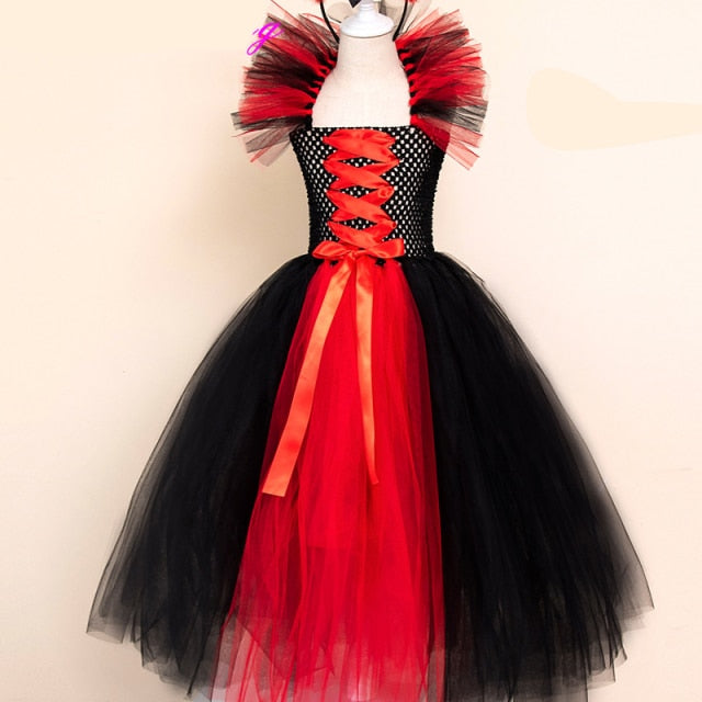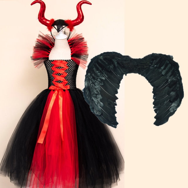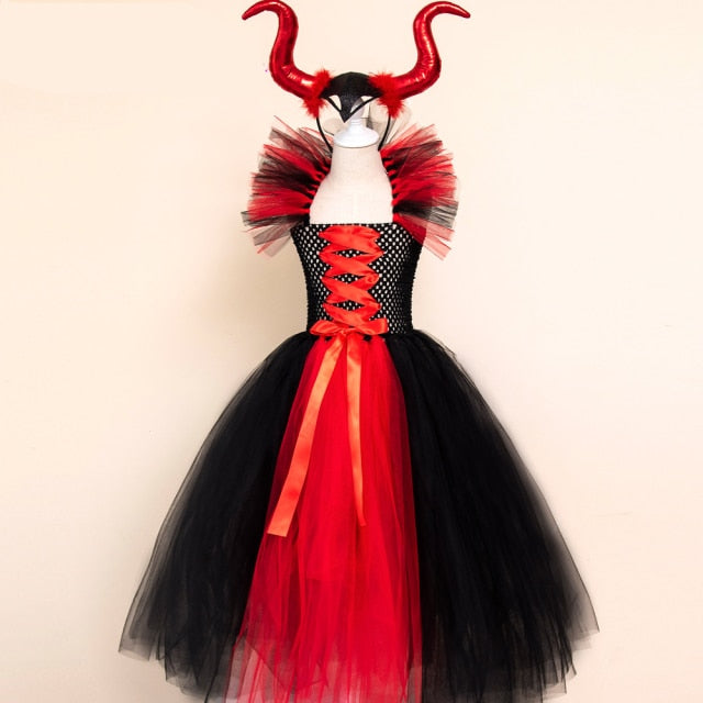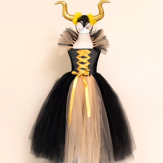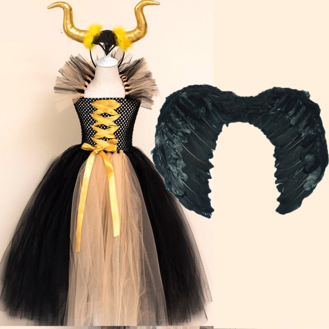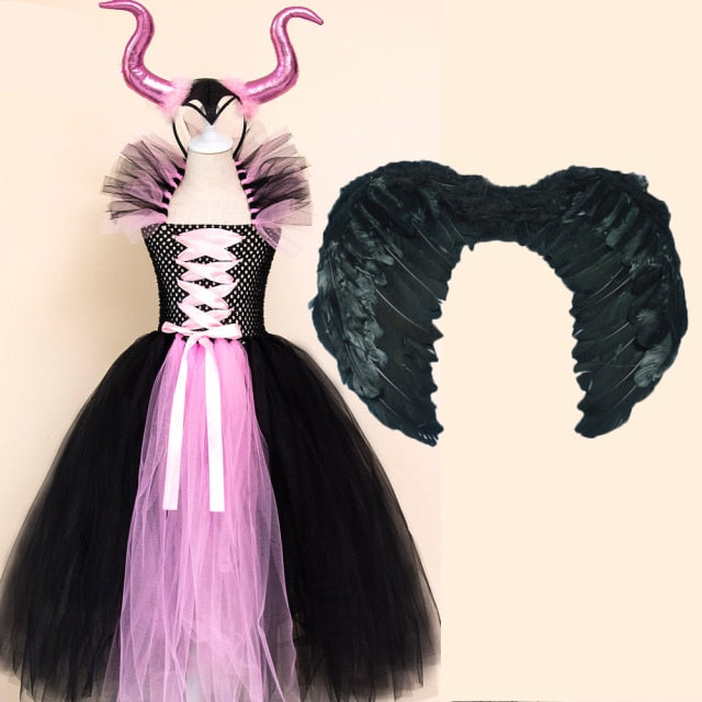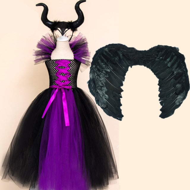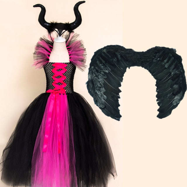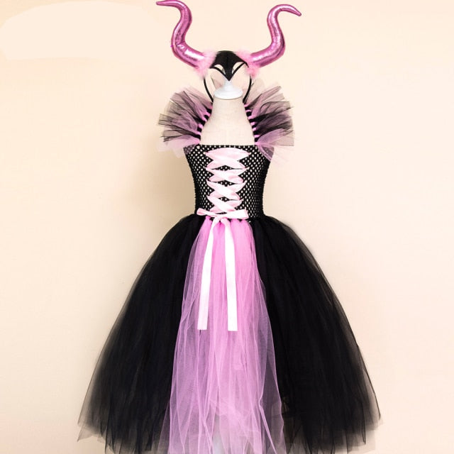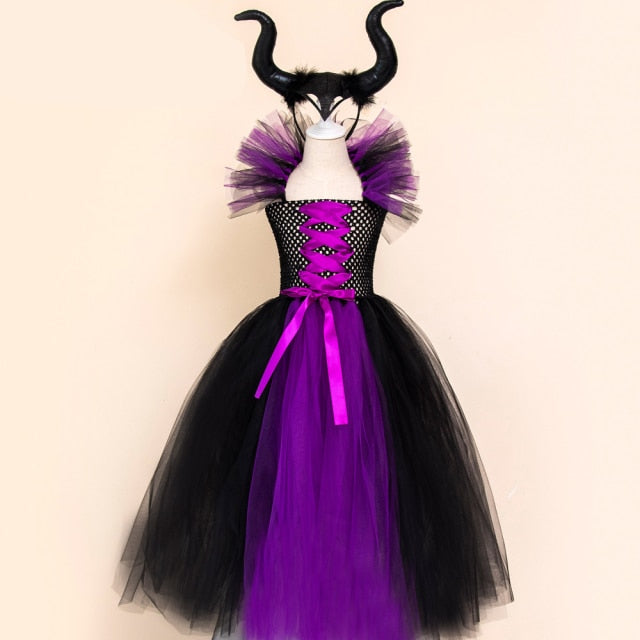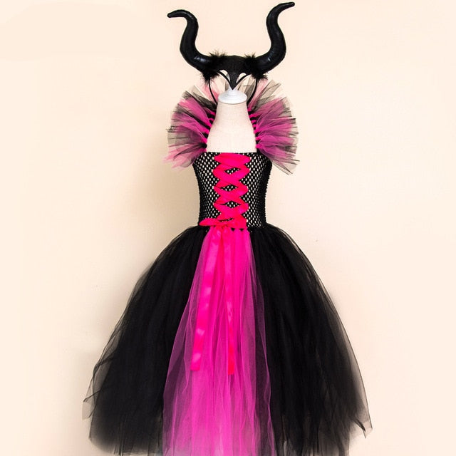 Männchen Ficent Of Evil Queen Tutu Rock für Mädchen Kleider mit Hörnern Halloween Hexenkostüm