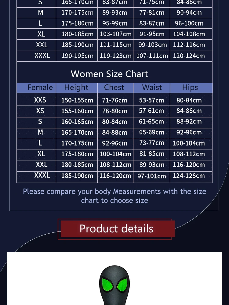 Die meisten Cosplay-Kostüme und Perücken haben wir auf Lager, aber Zentais und Schuhe fertigen wir von Grund auf neu, egal ob Sie sich für die Standardgröße oder eine Sonderanfertigung entscheiden.