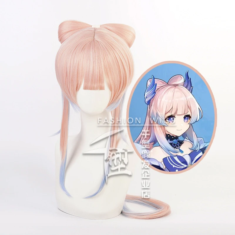 Sangonomiya Kokomi Lange Perücke 100 cm Cosplay Kostüm Hitzebeständiges Kunsthaar Spiel Genshin Impact Kokomi Damen Perücken