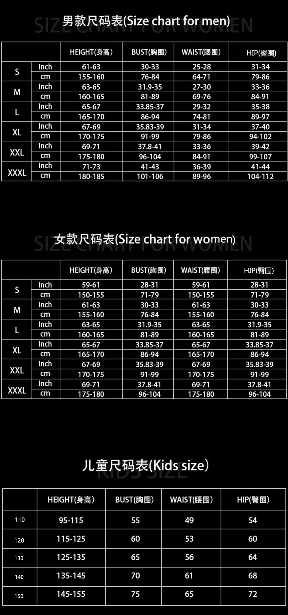 Größe: 110 120 130 140 150 SML XL 2XL 3XL