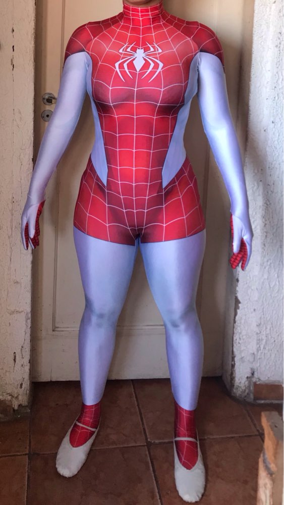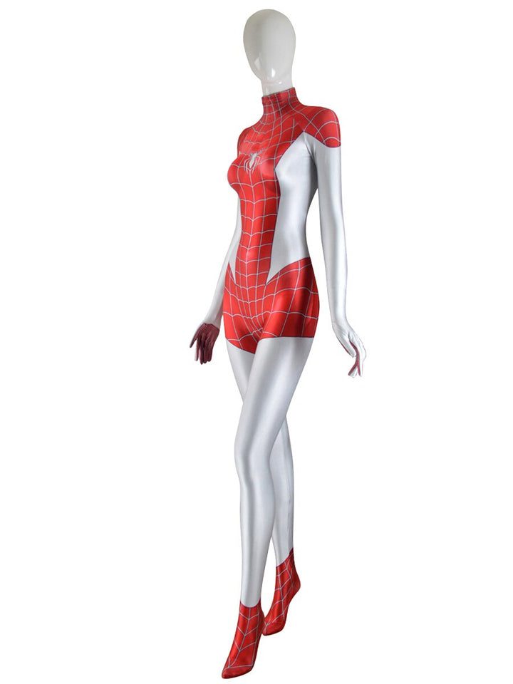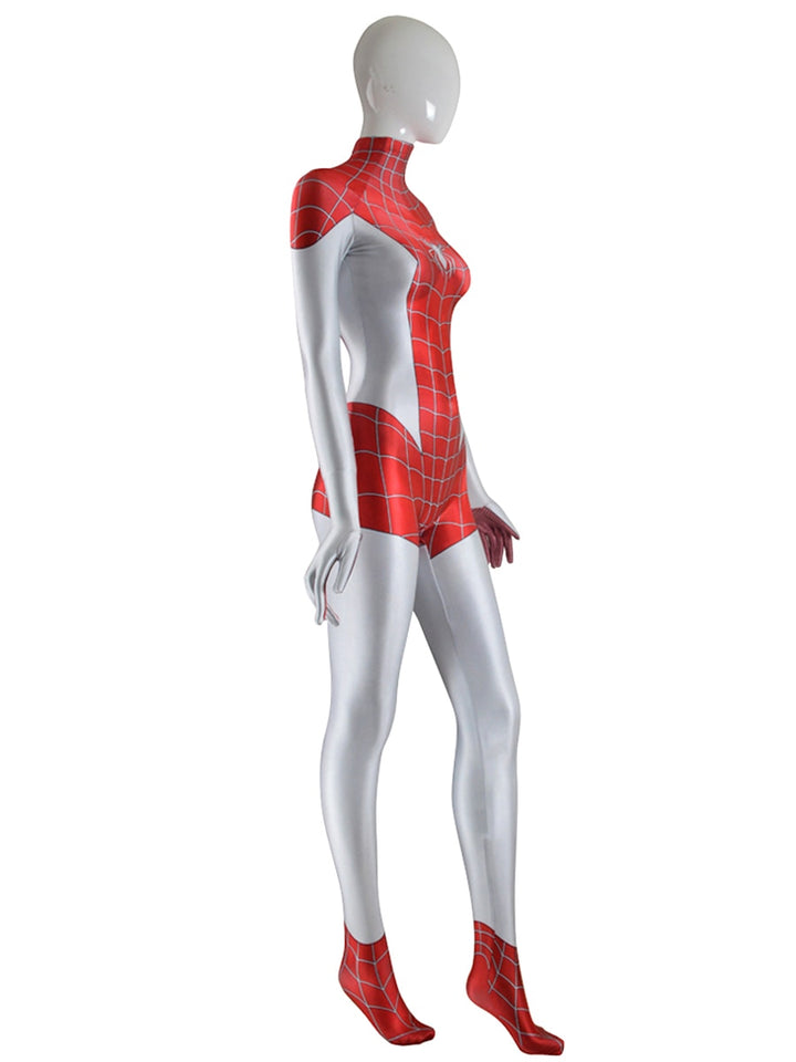 Weißer und roter MJ-Kostüm Mary Jane Girl Cosplay-Anzug mit 3D-Druck Halloween Zentai Catsuit