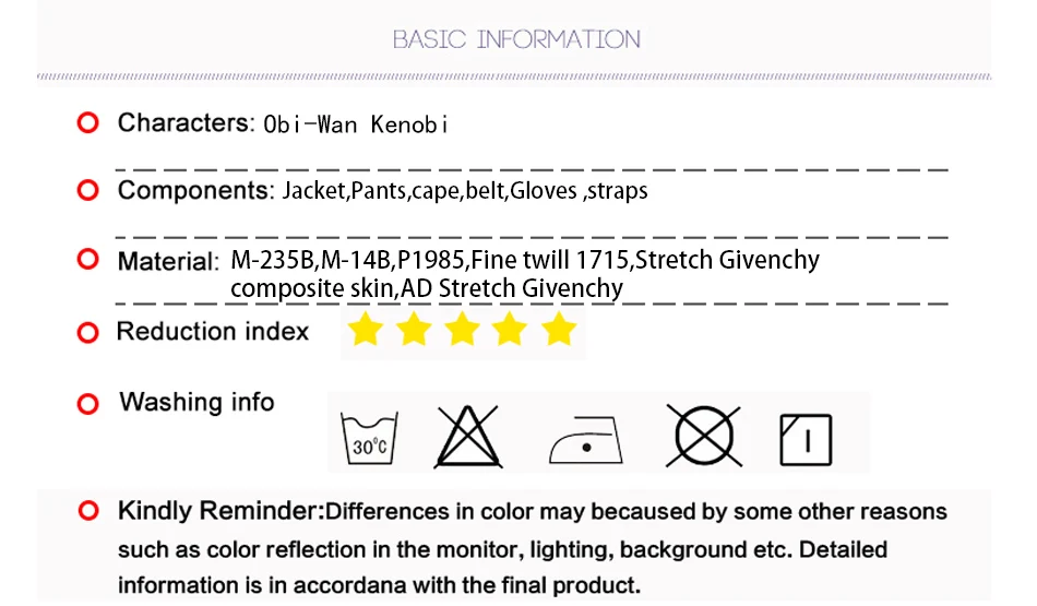 As all of our costume is hand-sewn, the finished costume may vary by approximately one (1-2) inch in either direction of the specified measurements.