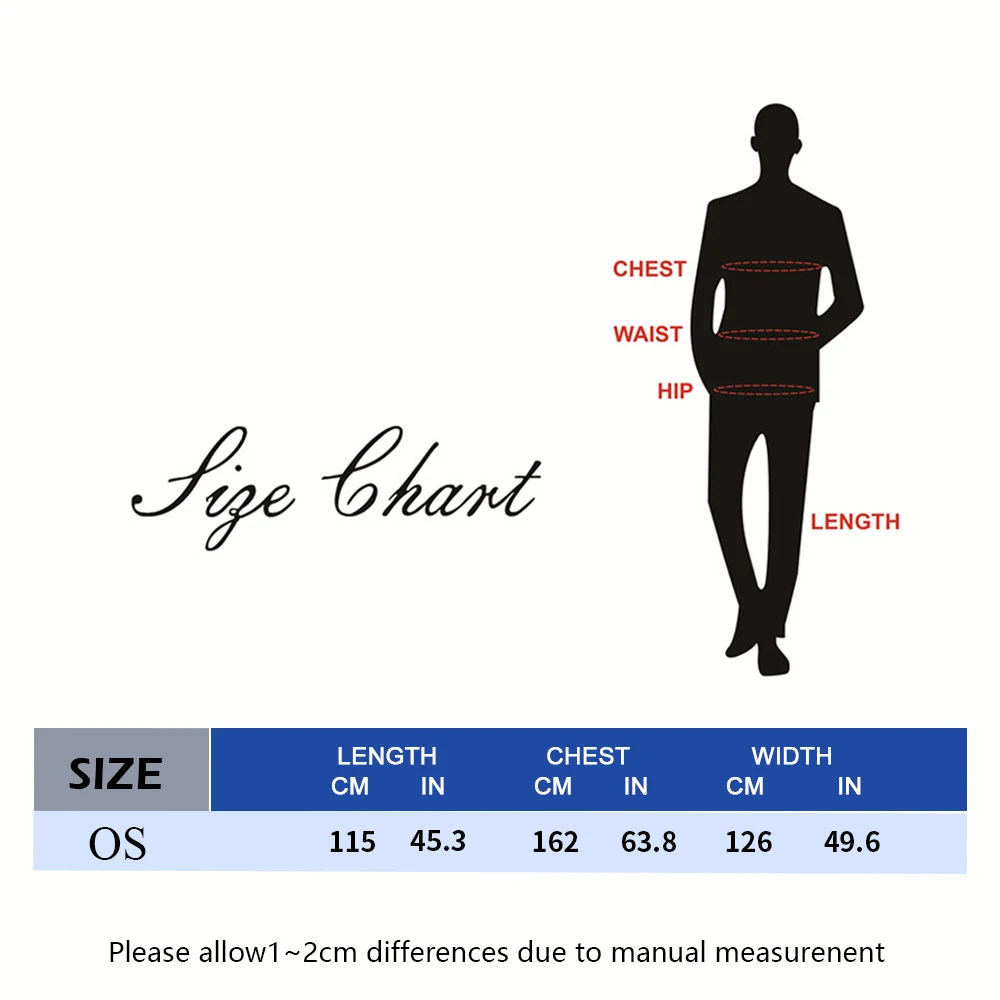 One Size:Length:115cm/45.3in,Bust:162cm/63.8in,Width:126cm/49.6in
