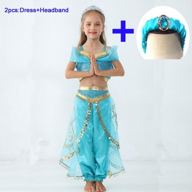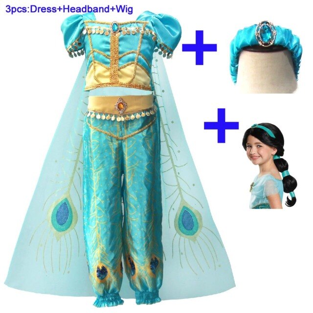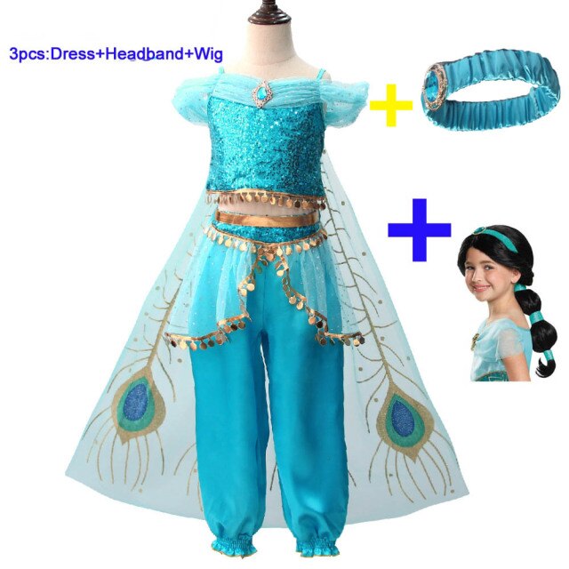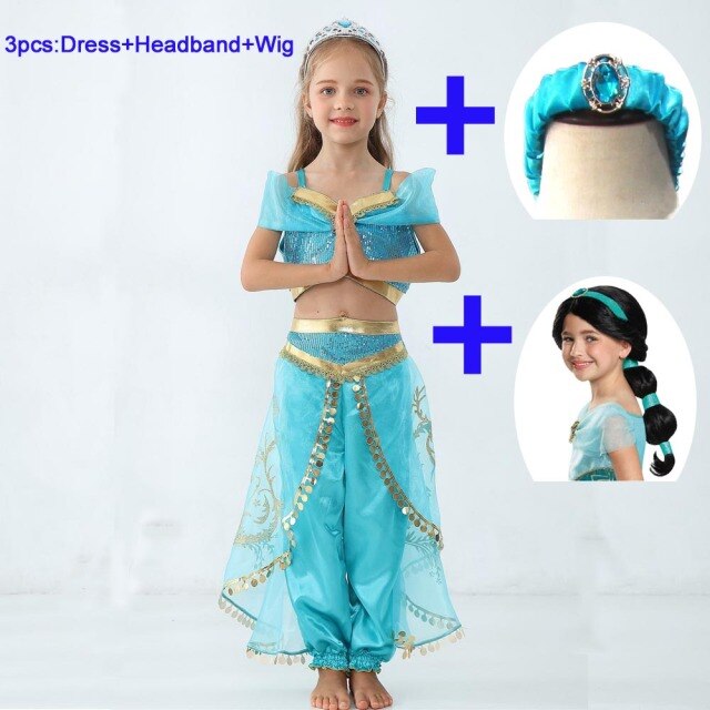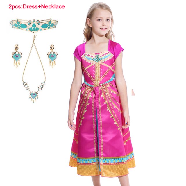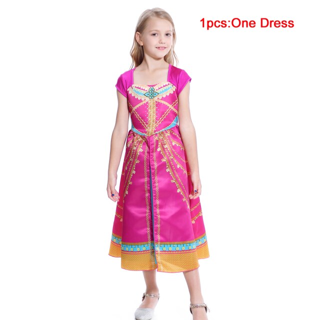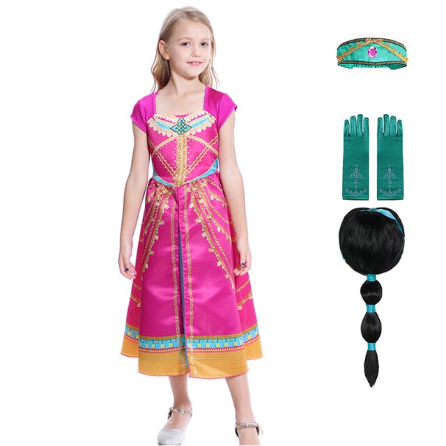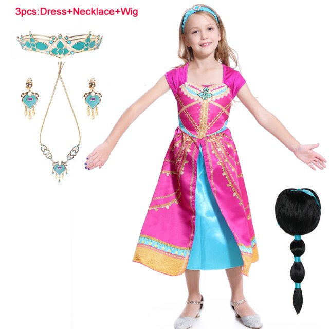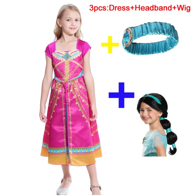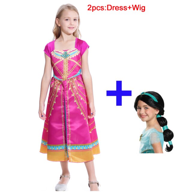 Girls Dress Aladdinin Costume Jasminene Dress Pink Fuchsiaia Outfit For Kids Women Aladdins a lamp jasmines cosplay Costume jasmines Wigs