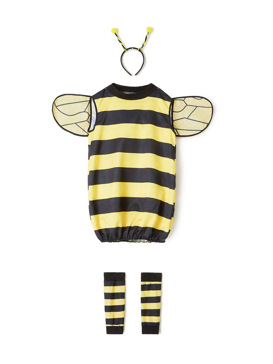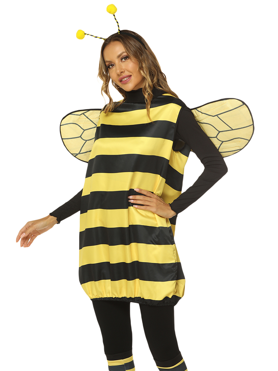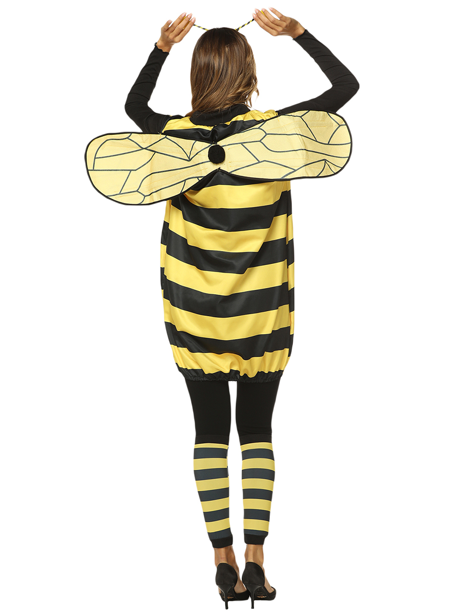 Halloween bee cosplay set includes a striped print dress, headband, wings and leg sleeves, the complete set will give you a fun cosplay.