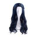 Descendantsants 2 Eviess Dark Blue Long Wavy Curly Wig With Braid Cosplay Costume Heat Resistant Synthetic Hair Women Cosplay Wigs