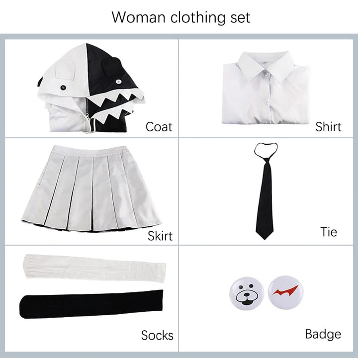 Danganronpapa Monokumama Uniform Suit Anime Cosplay Costume Man Woman Coat Tie Skirt Shorts Set Halloween Costume