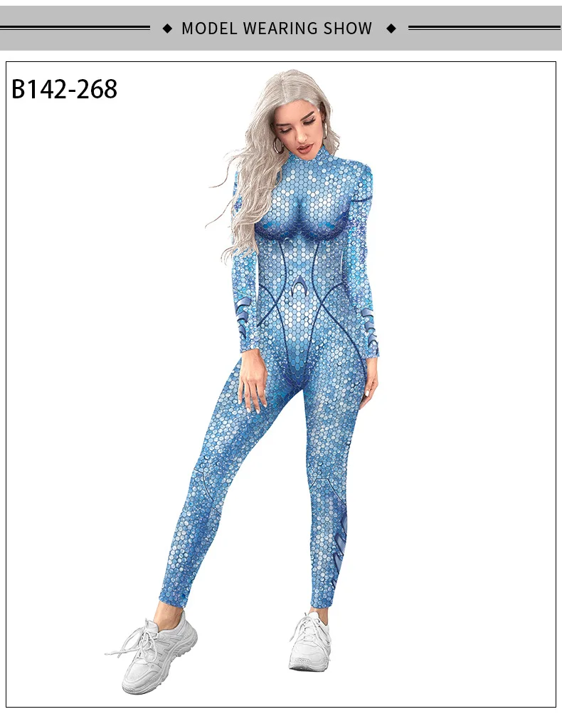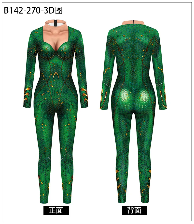 Women Kids Aquamaning Queen Atlannana Cosplay Costume Zentai Bodysuit Suit Jumpsuits