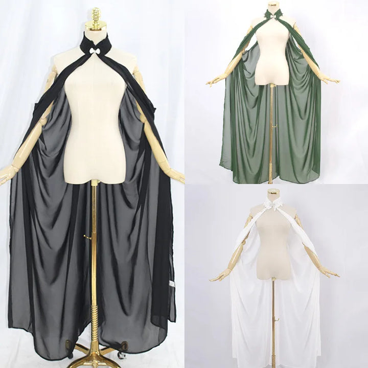 Medieval Fairy Shawl Cape Chiffon Gothic Wicca Robe Black Green Cosplay Victorian Dress Cloak Halloween Costume For Women