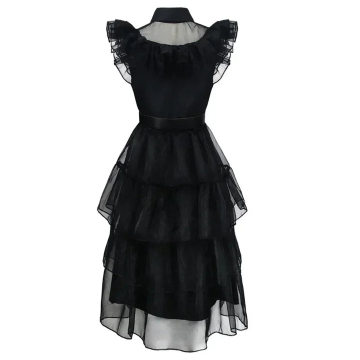 Wednesday Addams Dress Up Costume for Girls Birthday Halloween Cosplay Party Dress with Wig Socks Belts For Kids 2-12 Years