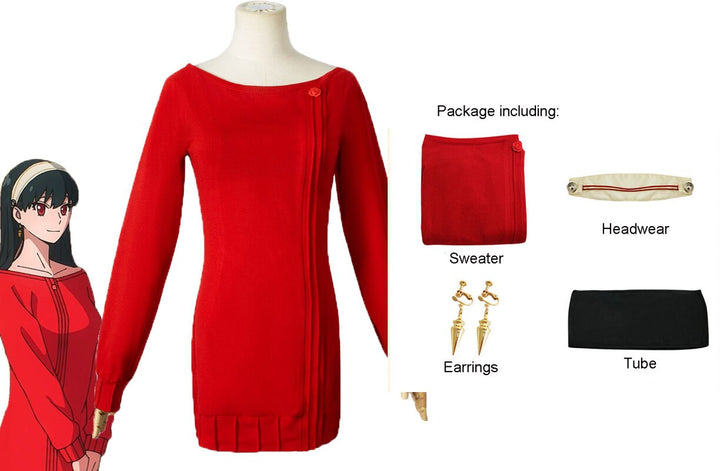 Anime Spys Forgerer Costume Yoror Cosplay Forgerer Red Sweater Dress Costumes For Girls Woman Party Full Set