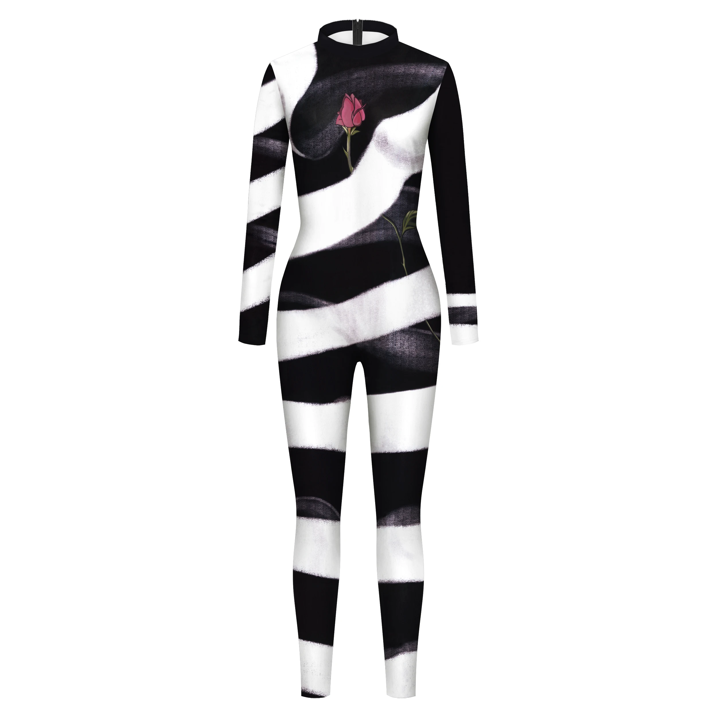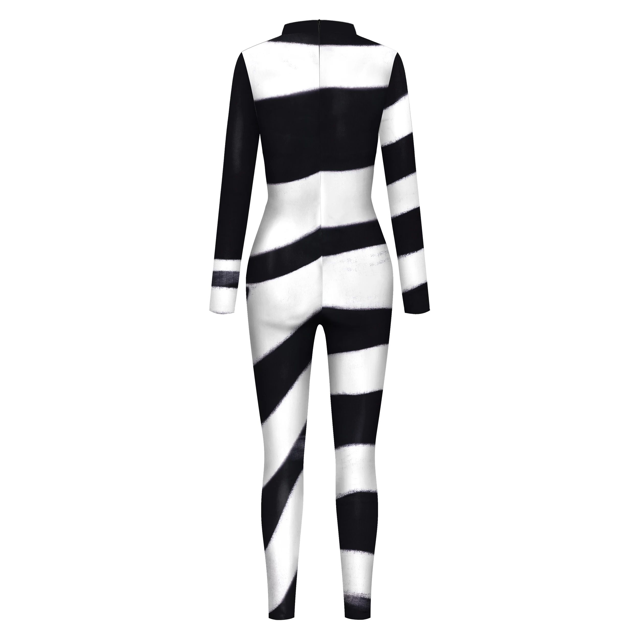 Women Stripe Carnival Party Fancy Bodysuit Jumpsuit Halloween Zebra Cosplay Costumes Dress Up Outfit Zentai Suit