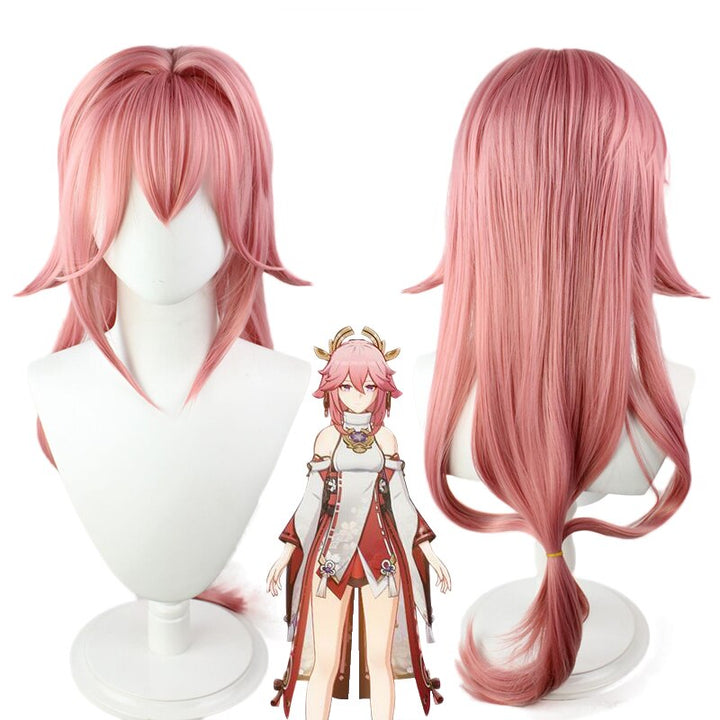 Game GenshinImpactYae Guuji Pink Long Wig Cosplay Costume Heat Resistant Synthetic Hair YaeMikoWomen Carnival Party Wigs