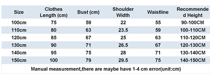 As all of our costume is hand-sewn, the finished costume may vary by approximately one (1-2) inch in either direction of the specified measurements.