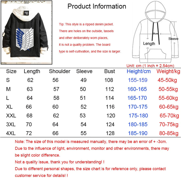 Hoodie Attack on and Titan Denim Jacket Scout Regiment Rival Cosplay Jeans Coats Hooded Jackets