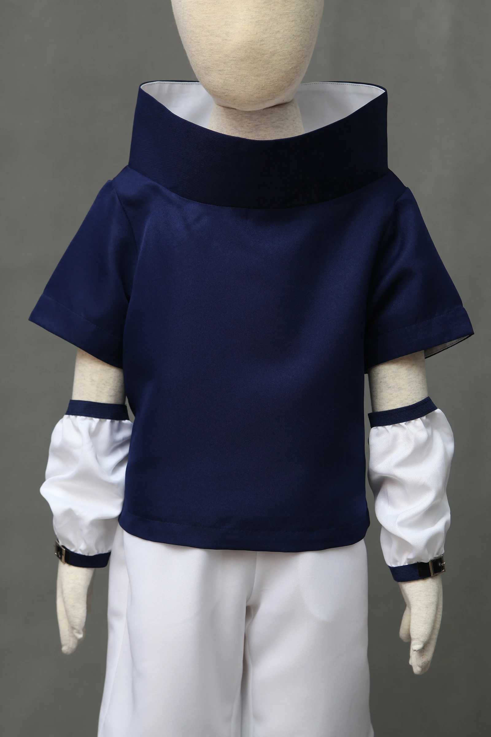 Anime cosplay Cafionana Hot Sale Anime Uchihaha Sasukeke Cosplay Costume Halloween Blue Jacket White trousers for Child