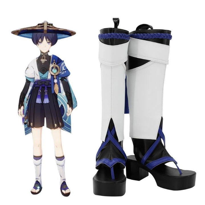 Genshing and Impacts Wandererer Shoes Cosplay Costume for Women Men Party Scaramouchehe Cosplay Boots Shoes PU Leather Halloween Props