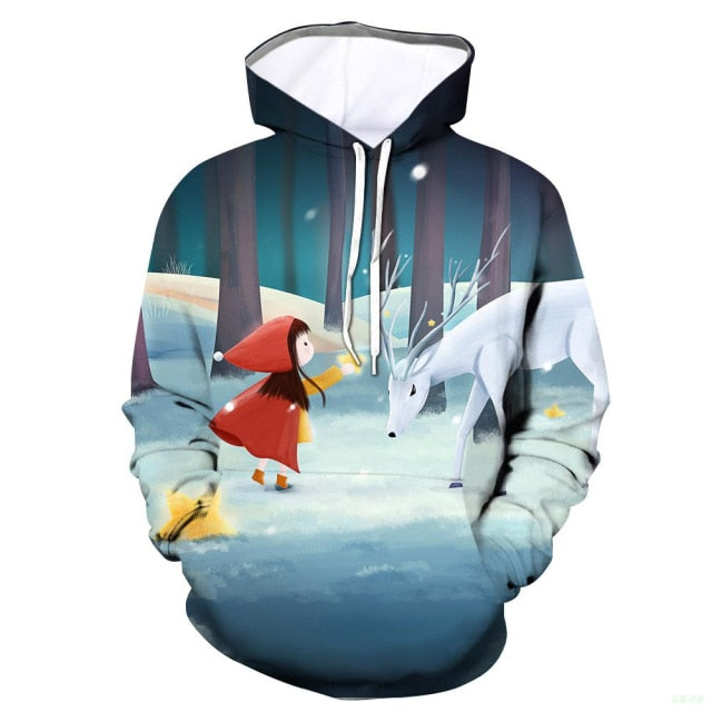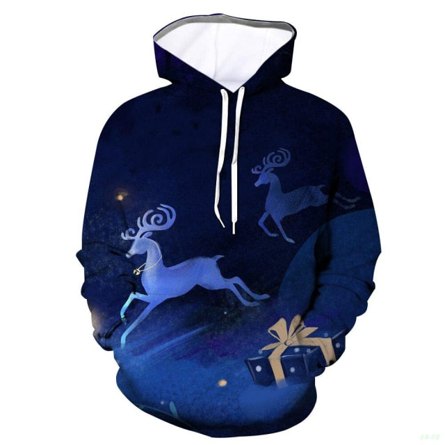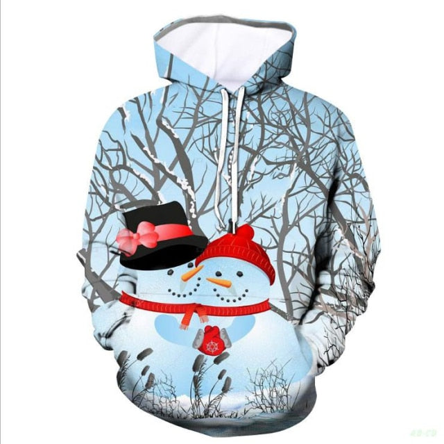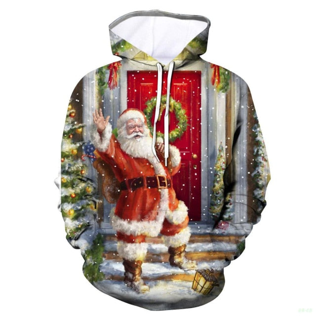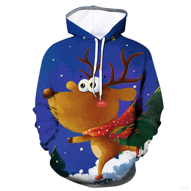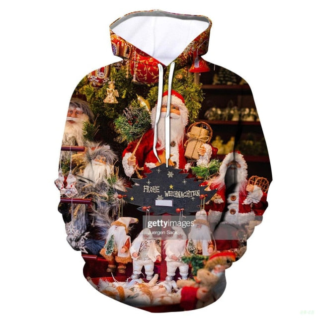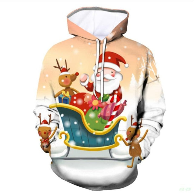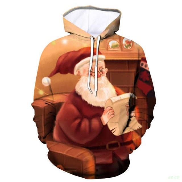 3d digital printing Christmas Santa Claus holiday clothing sweater boys hooded loose girls can wear large size clothes