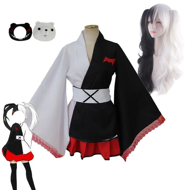 Anime Danganronpapa Cosplay Costumes Monokumama Kimono Full Set Japanese Dress Wig Women Prom Party Black and White a Bear Accessories