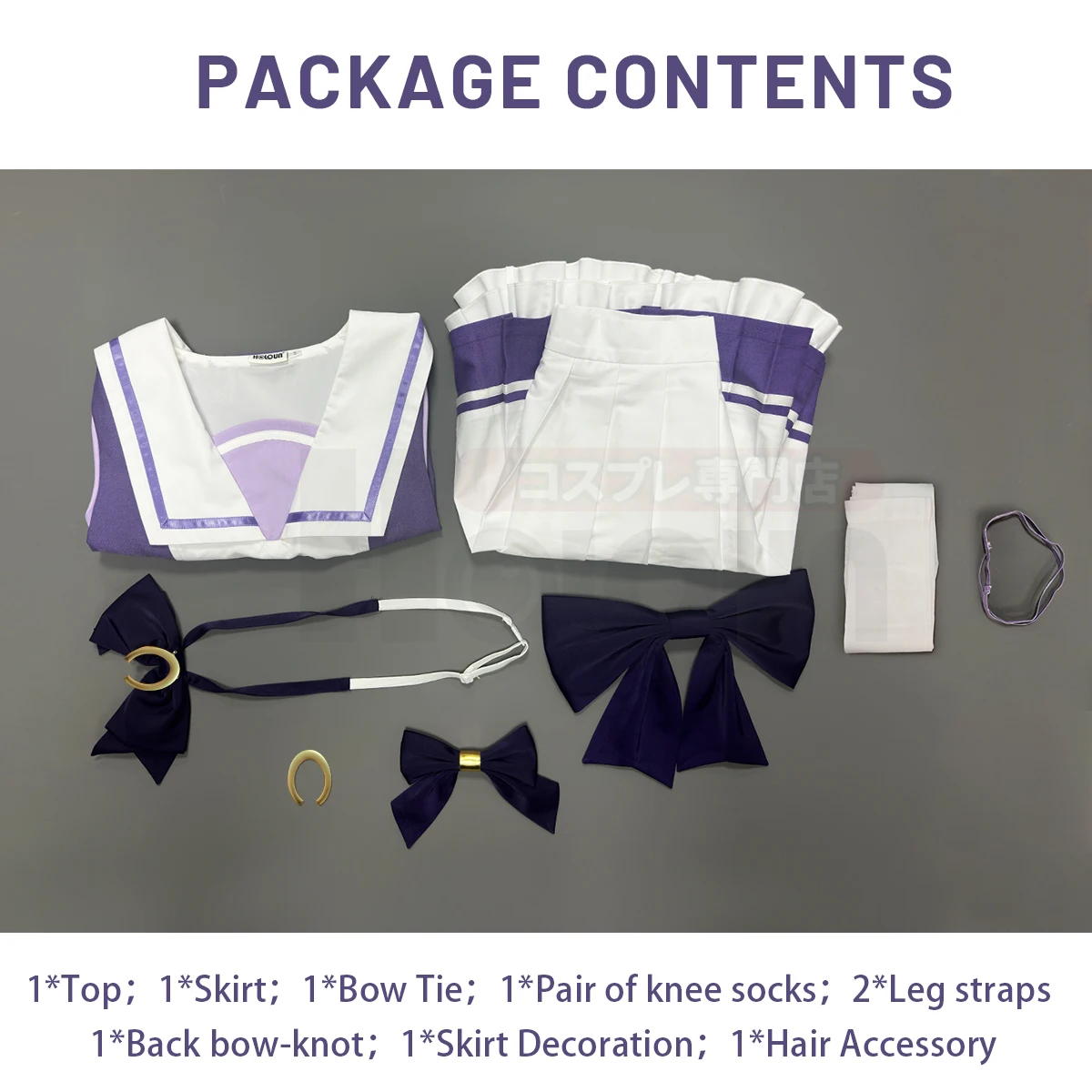 Costume only :1*Top;1*Skirt; 1*Bow Tie;1*Back Bow; 1*Skirt Decoration; 1*Hair Accessory