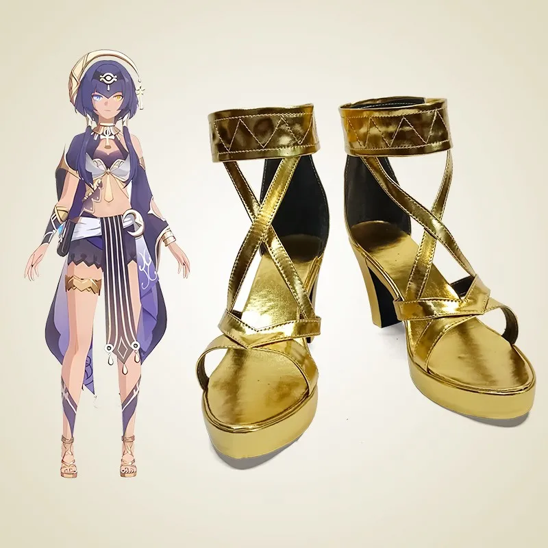 New Anime Game Cosplay Boots Genshing and Impacts Candacece Shoes Gold High Heels Shoes Halloween Aksesoriri Dibuatat Sesuaiai Pesananan