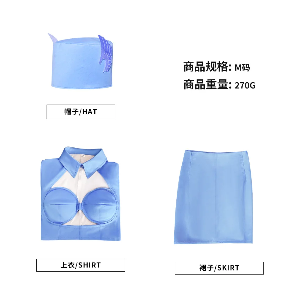 The FifthElement Cosplay Blue Uniform Dress Waiter Costume Adult Women Vintage Airline Stewardess Halloween Fashion Sexy Set