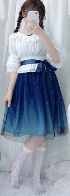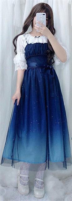 Gradientnt Gauzeze Princess Dress Kawaii Girl Gothic Lolita JSK Adult Sweet Anime Loli Dresses Cosplay Costume
