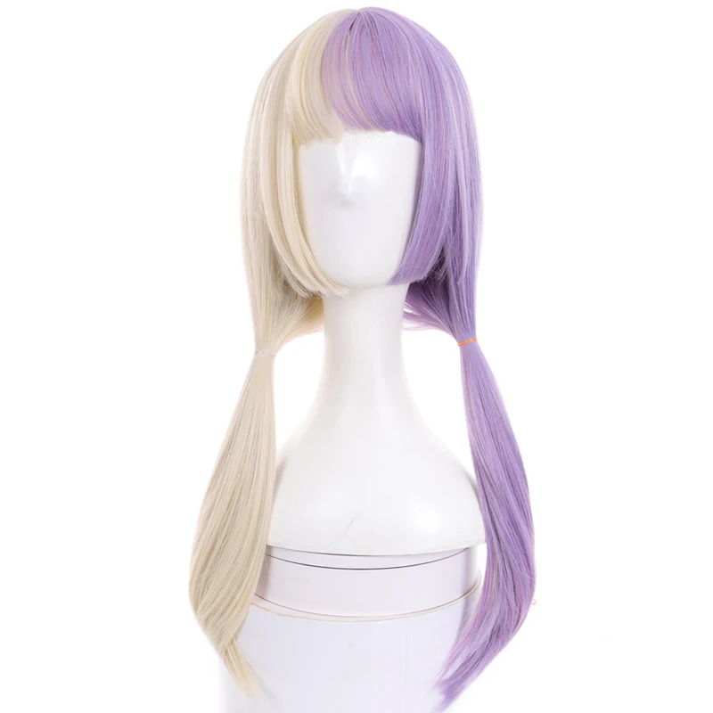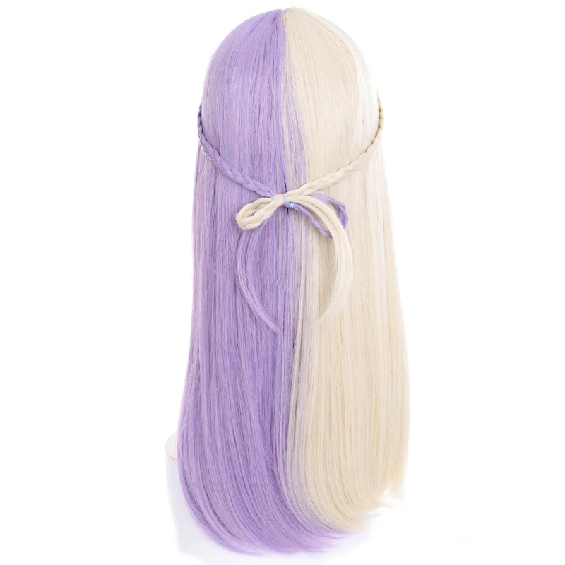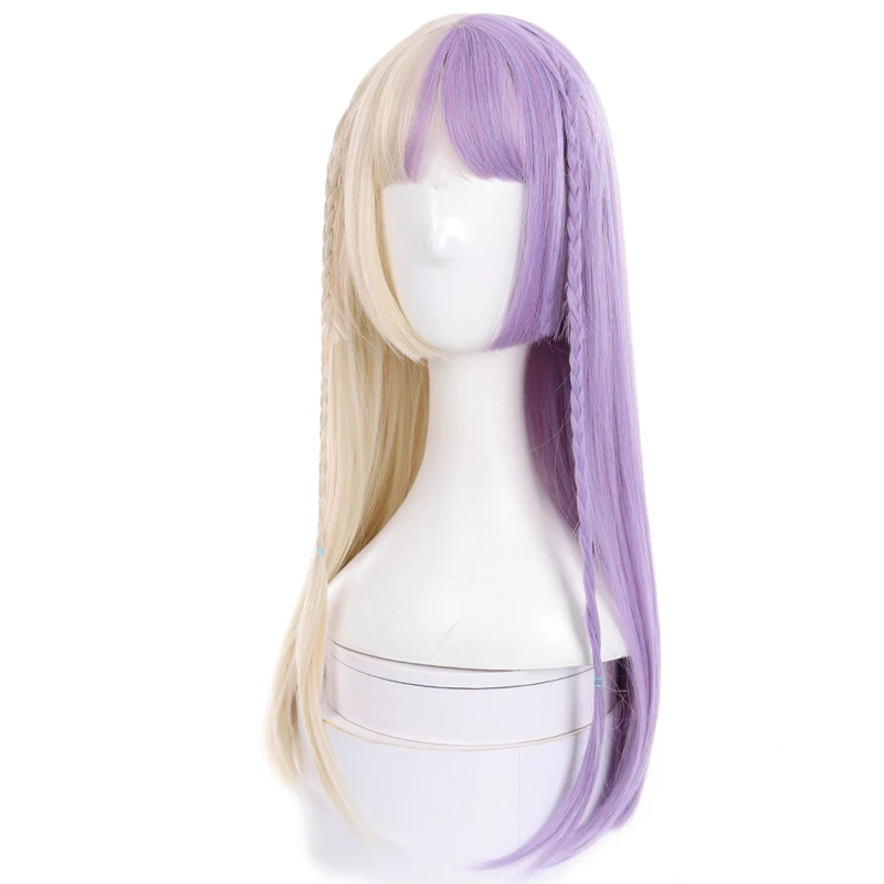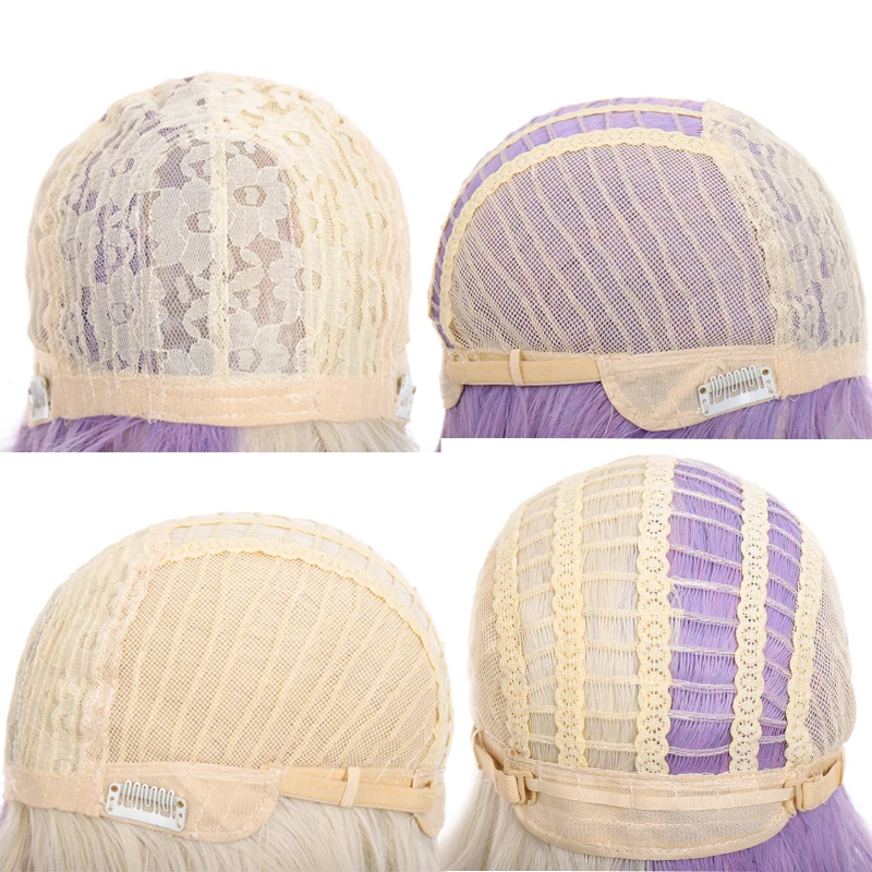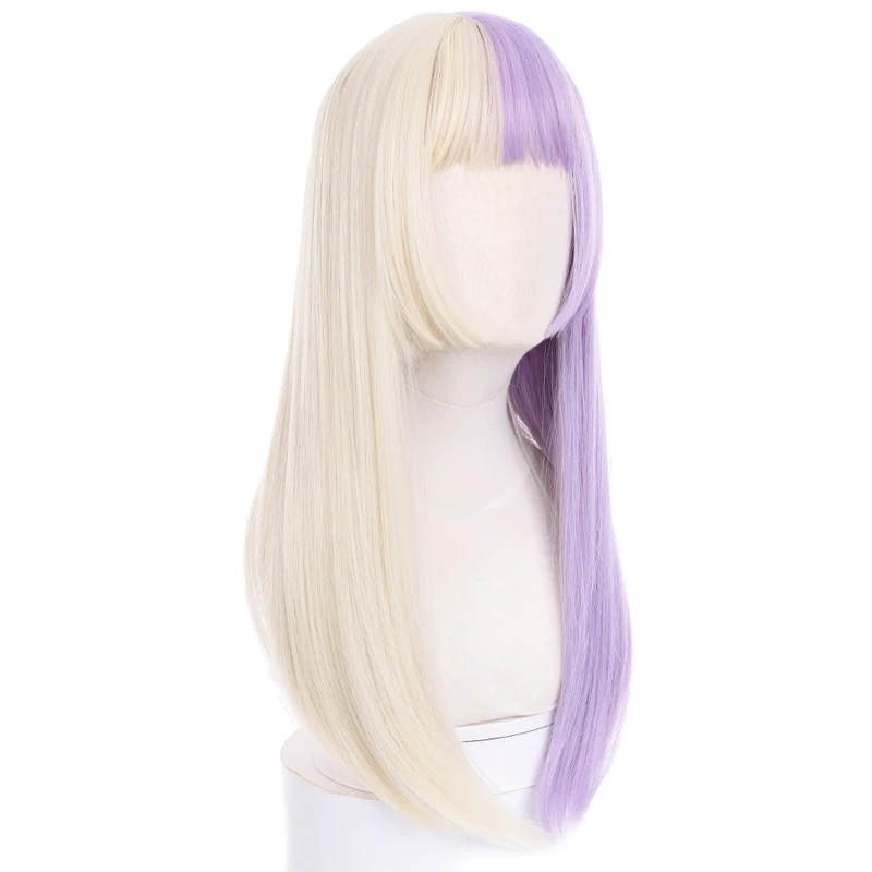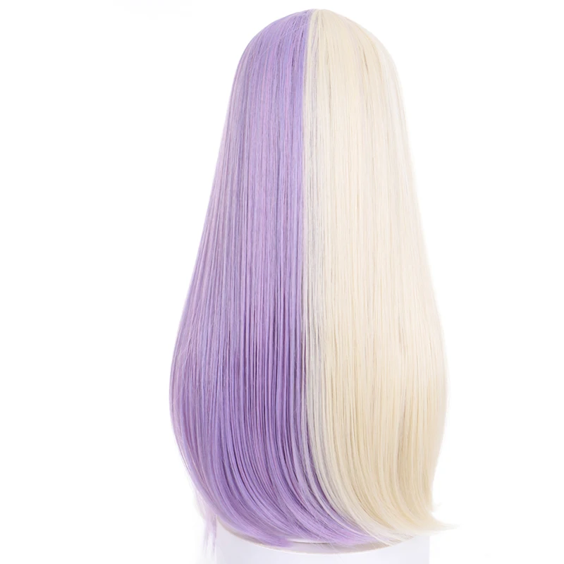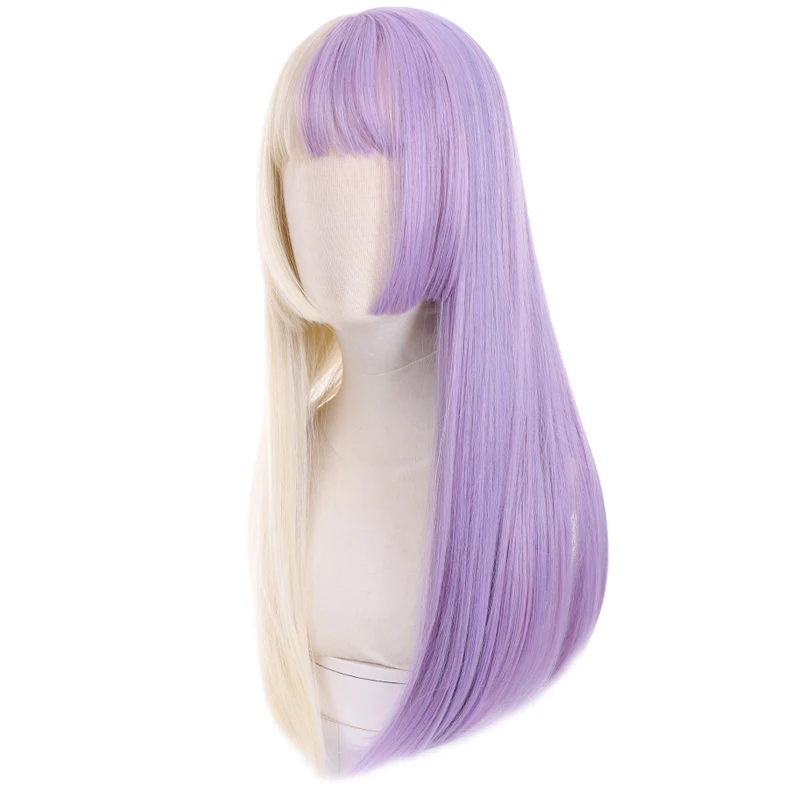 long synthetic straight buckle wig with bang light purple Beige Two-tone wig high temperature fiber for women cosplay party