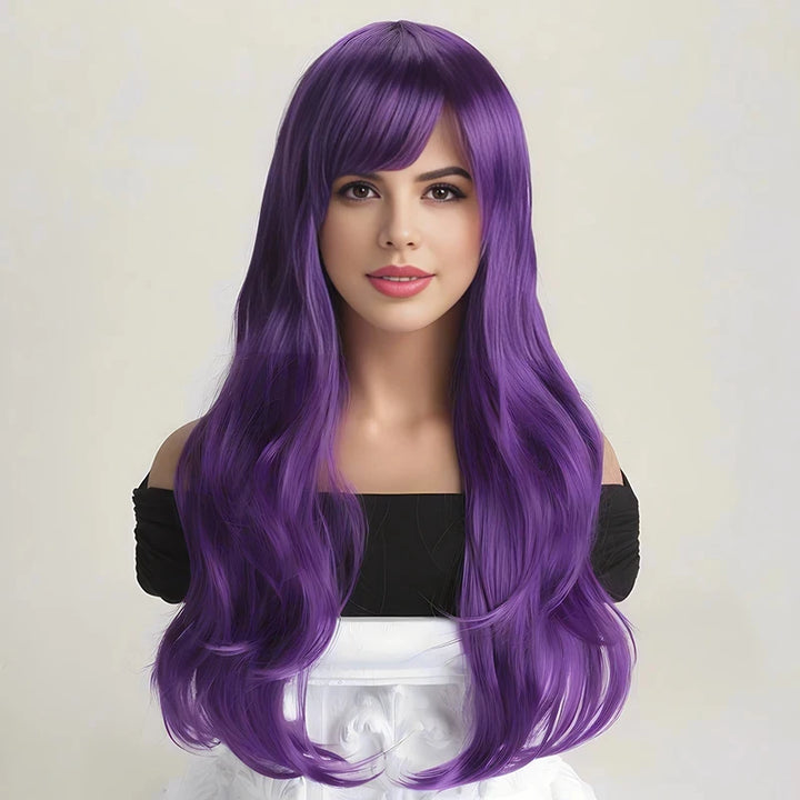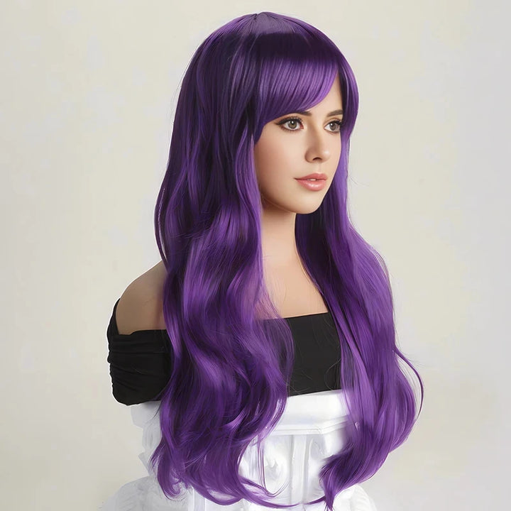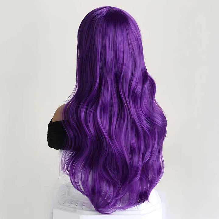 Purple 26-inch synthetic wig with big waves for Halloween cosplay, daily costume, holiday wig, high-temperature hair accessory