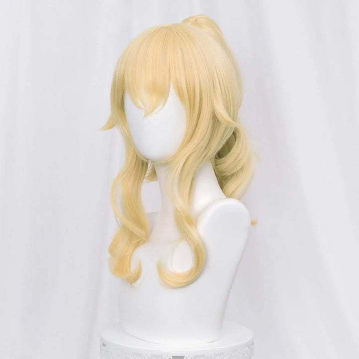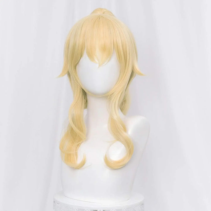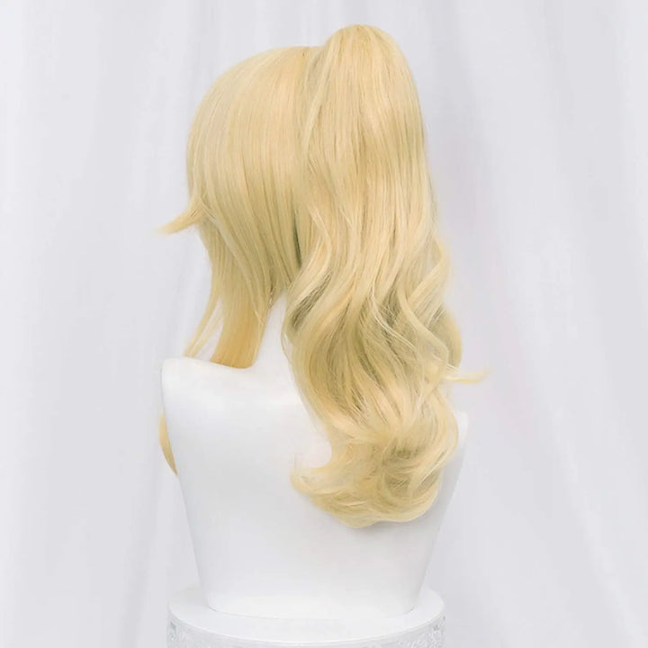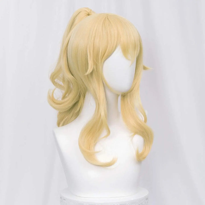 Wavy Blonde Ponytail Wig for Jean Cosplay Golden Princess Hair Wigs with Pigtails Bangs for Halloween Peach Costume