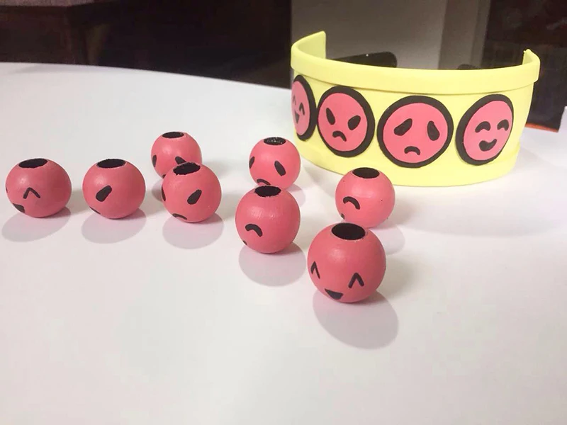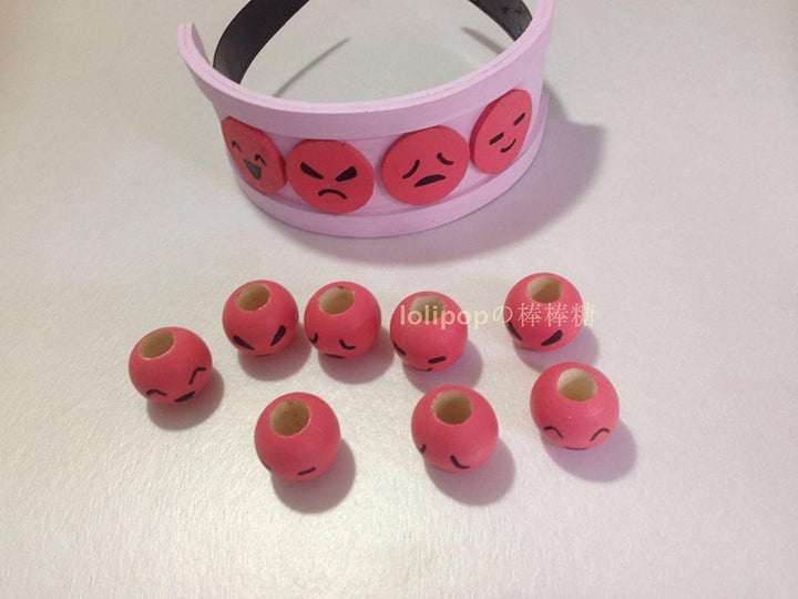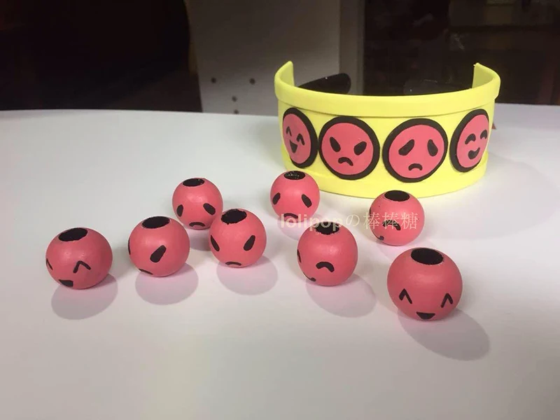 This is a light yellow and rose red version with 8 beads, 2.5cm in diameter