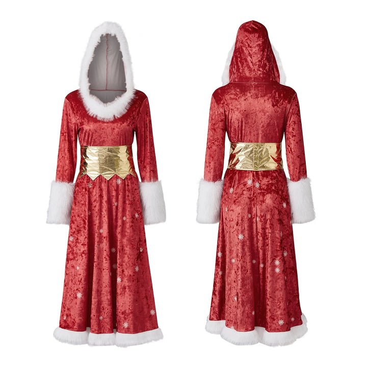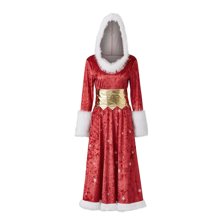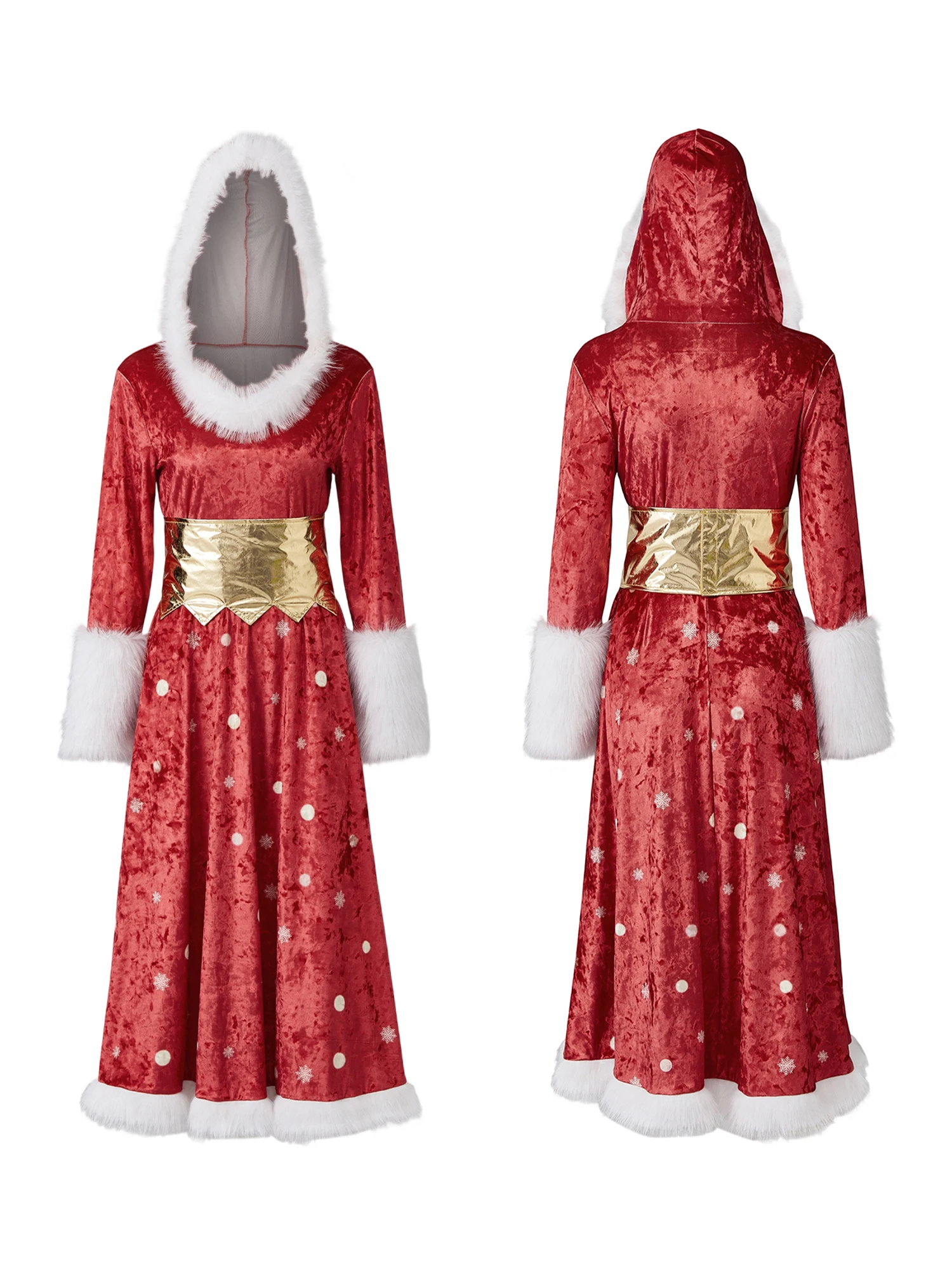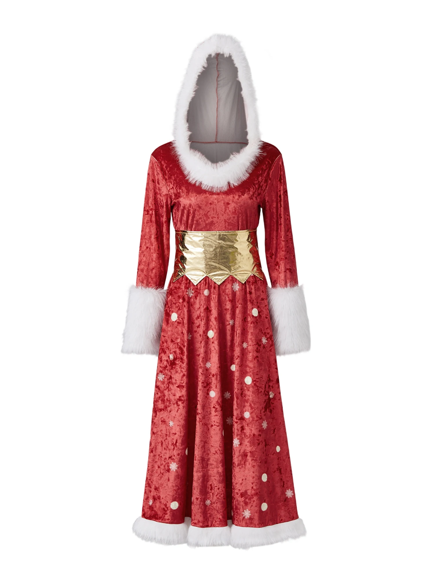 2026 Christmas Women Long Dress Long Sleeve Dress Furry Patchwork Swing Dress for Party