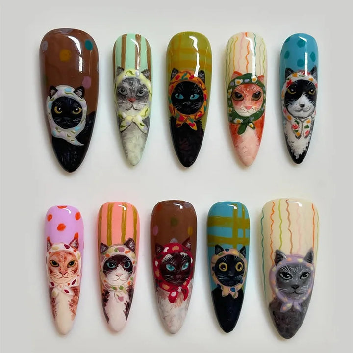 24pcs Anime Pattern Full Cover Nail Tip Colorful Almond False Nail Art Ornament for Girls Wearable Press on Nails Set Fake Nails
