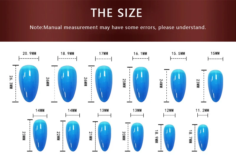3.Select the right size to match your nails, apply glue to the back of it, or use a back adhesive to stick to the back of the nail plate;