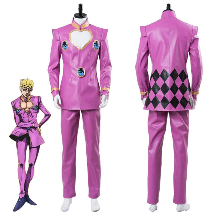 Anime JoJo cos Bizarrere a Adventure Golden Wind Cosplay Giornono cos Giovannana Cosplay Costume Pink Suit Uniform Halloween Carnival Made