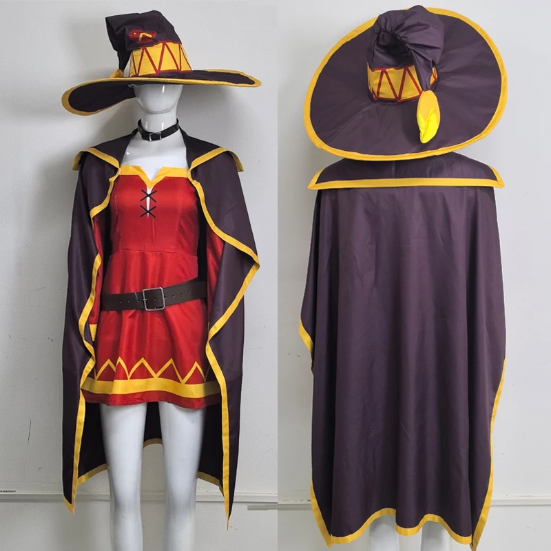 Anime KonoSuba Megumin Cosplay Costume Classical Witch Costume Uniform Cloak Hat Blindfold Stocking for Halloween Party Women