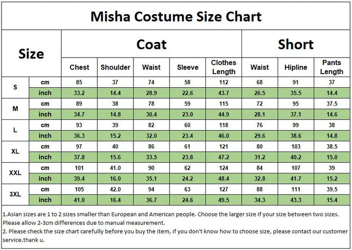As all of our costume is hand-sewn, the finished costume may vary by approximately one (1-2) inch in either direction of the specified measurements.