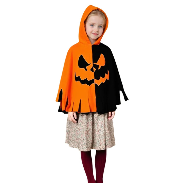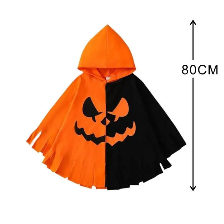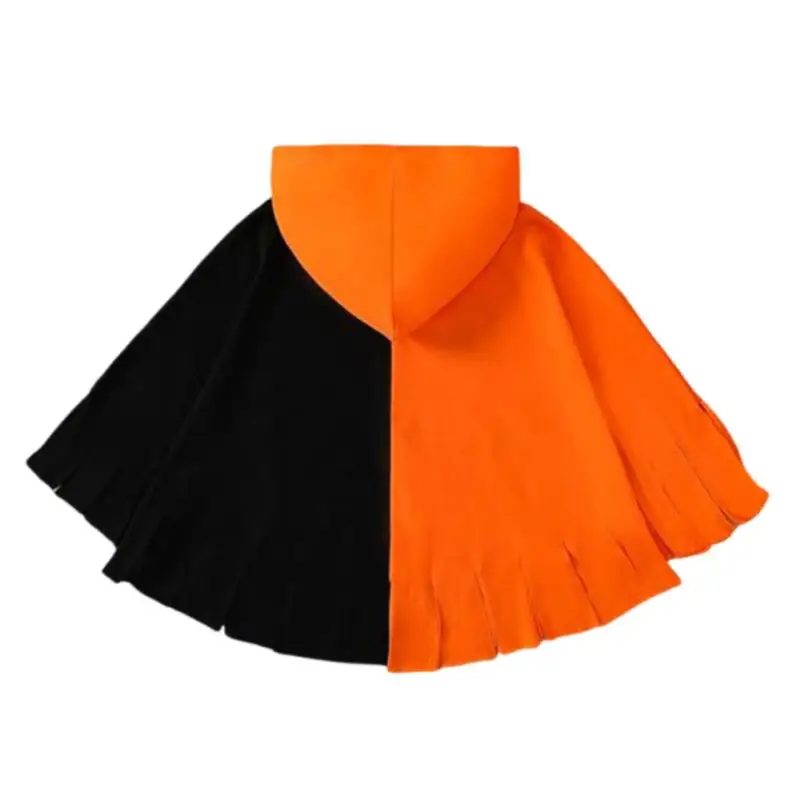 Get ready for a night of tricks and treats! This fantastic Halloween Cape is the perfect costume accessory for your little monster, witch, or vampire. Featuring a vibrant and festive print of pumpkins and bats in the classic Halloween orange and black color combination, this cloak instantly creates a mysterious and fun look. The attached hood adds an extra element of spooky disguise, making it ideal for carnival parties, dress-up, and cosplay events. Made from high-quality 100% Polyester, it is soft, lightweight, and comfortable for kids to wear all night long while they collect their candy haul.