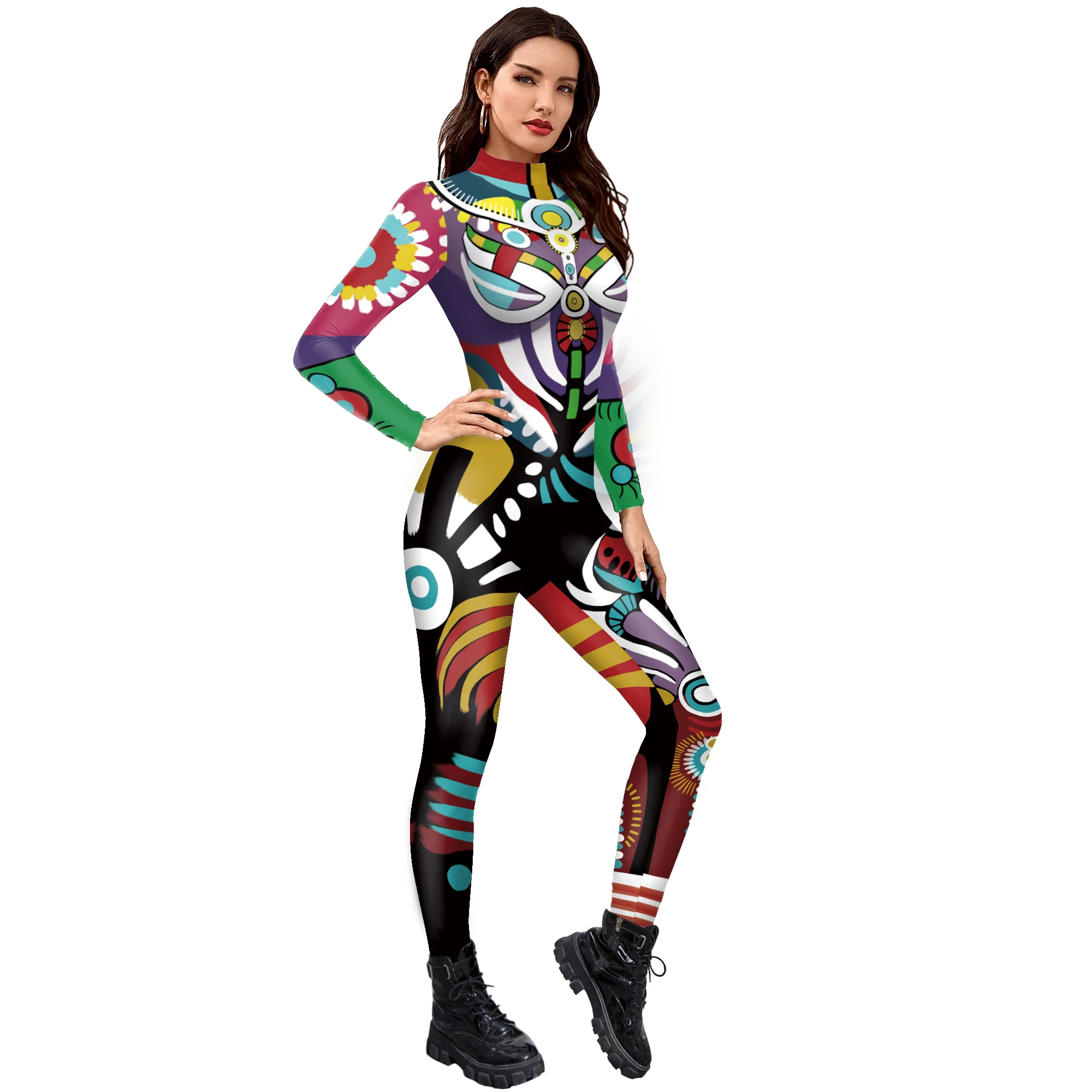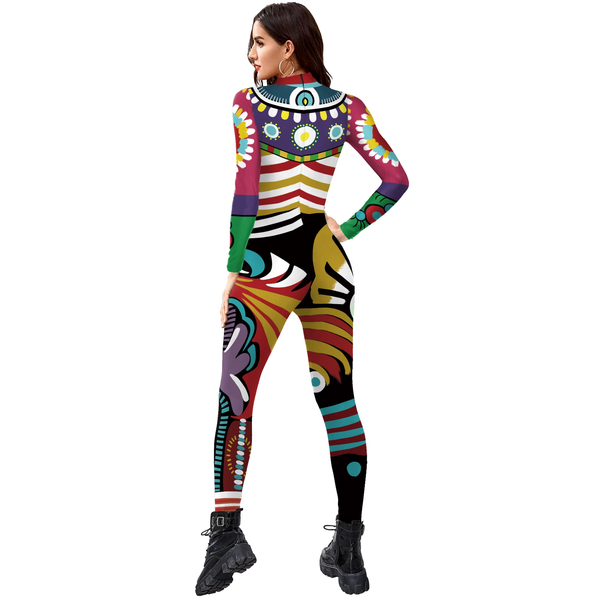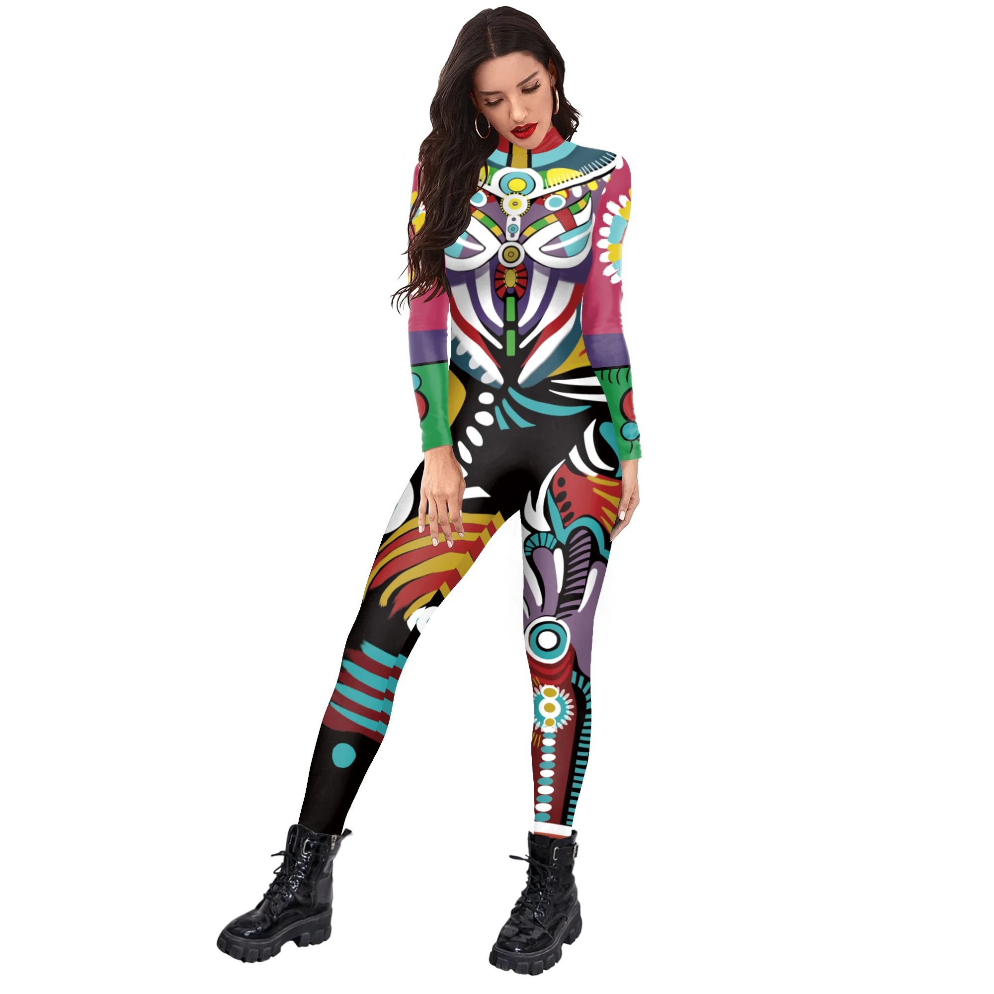 Halloween Women Cosplay Robot Punk Printed Retro Mechanica Cosplay Jumpsuit Catsuit Zentai Halloween Bodysuit