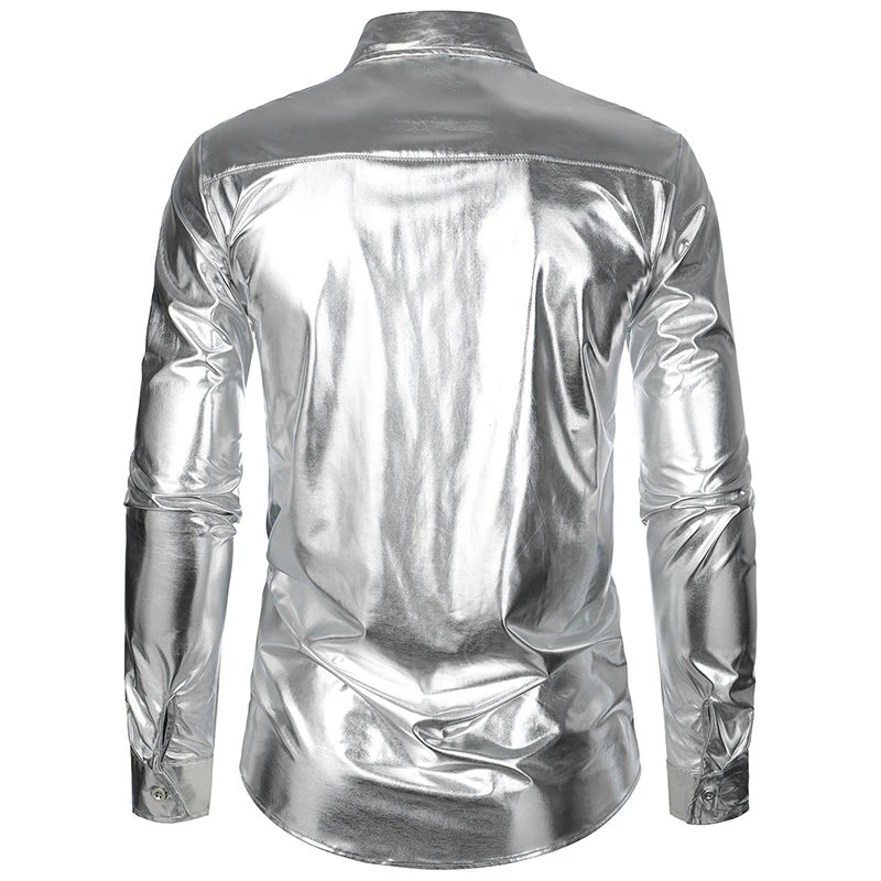 Men's Metallic Glossy Long Sleeve Shirt Gold Silver Nightclub Party Shiny Shirt Vintage Disco Costume